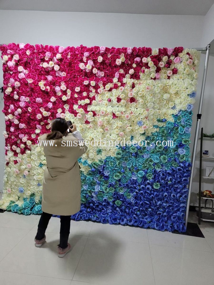 دکور سفارشی عروسی رول 3 بعدی دیوارهای پارچه ای گل پانل پس زمینه تزئین پس زمینه گل مصنوعی برای دیوار مهمانی